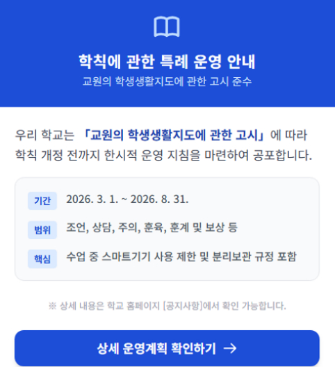 첨부자료1 : 「교원의 학생생활지도에 관한 고시」 관련 학칙에 관한 특례 운영계획.hwp