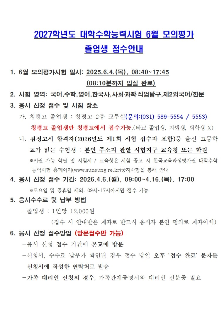 첨부자료1 : 2027학년도 대학수학능력시험 6월 모의평가 졸업생 응시 안내.hwpx
